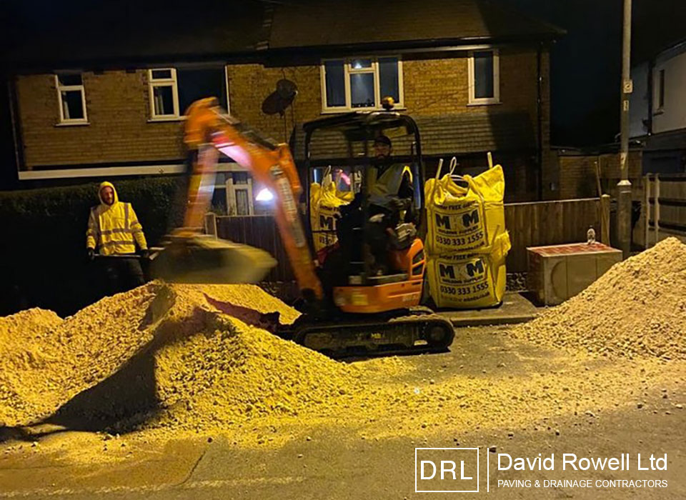 DetailsDue to this block paving being laid over an original driveway with insufficient drainage, water has accumulated between the two ending in both having to be removed. The water had entered the house bridging damp and rotted the internal floors. We are excavating to the lower levels then fill with appropriate aggregate and a new…